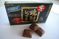 「ばっかす」と「らみー」ちゃんに新しいお友達が増えました。お口の恋人(←これまたエライネーミング)ロッ○から季節限定で「芋焼○ショコラ」が発売です。ミルクチョコレートの中に鹿児島県産芋焼酎を詰め込んだ、なかなかに美味~な大人向けショコラ。そんなに「うぁっ!焼酎ぅぅっ!」ってカンジじゃないのでそんなに焼酎好きじゃなくても気軽に食べられマッスル☆。温かい中国茶とも愛称がよいかも。でも車の運転がある人はNG。アルコール分3.4%です。12粒入り170円前後。コンビニorスーパーで。