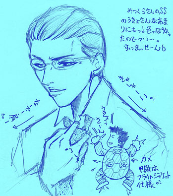 ところでところで、いっひっひ。みつくらさまよりとんっでもなくスッテキ~な相○SSをいただいてしまいました。カメ×うきょです。ウラページのギフトのコーナーに鎮座ましましておられますので、18歳以上エロ大好きナマモノOKの方は是非ご謹読を☆。